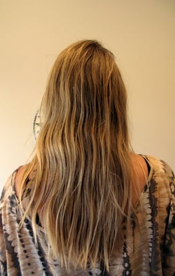 Moonika had a medium amount of fairly fine hair, that fell to just below her shoulders. Dreading her hair as it is, she would have lost about 3 cm, keeping the tips open and her dreads would come to the neckline of her blouse. She wanted long dreads hanging down to the small of her back with lovely flowing tips. So that's just what we gave her!