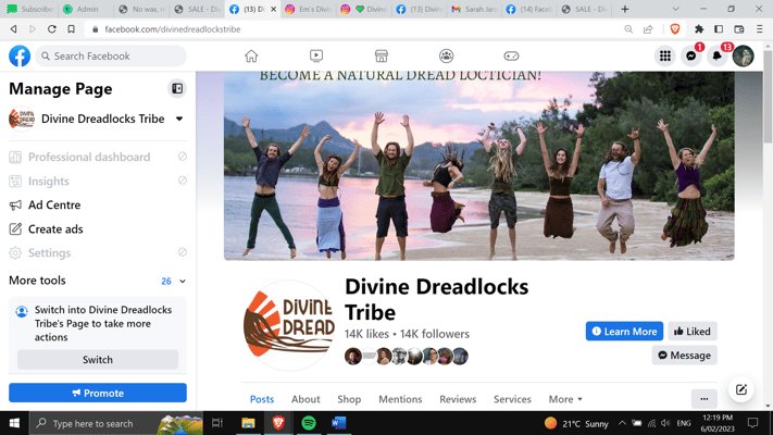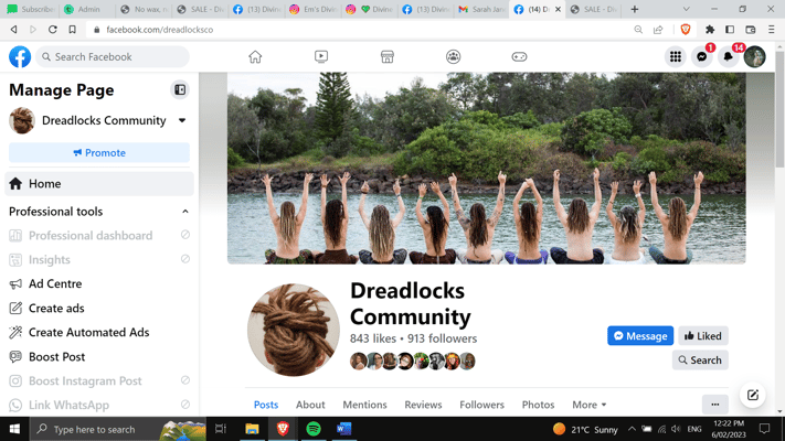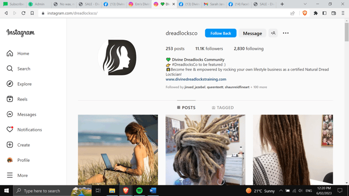 Divine Dreadlocks Tribe Facebook page 14k followers TBD: